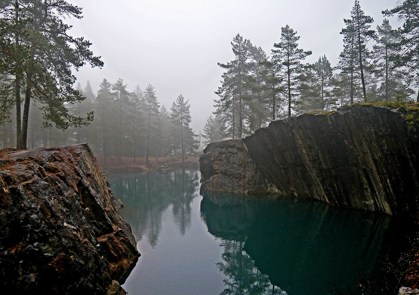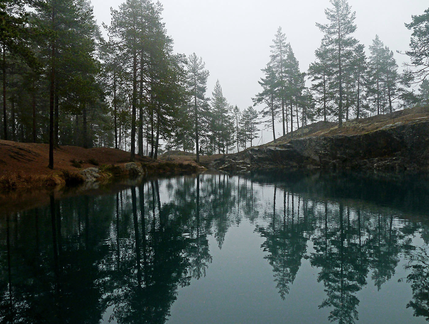 Östra Silvberg – one of Sweden’s oldest mines. During the 15:th century this was an important silver mine. The mine holes are now water filled with a characteristic bright blue water.