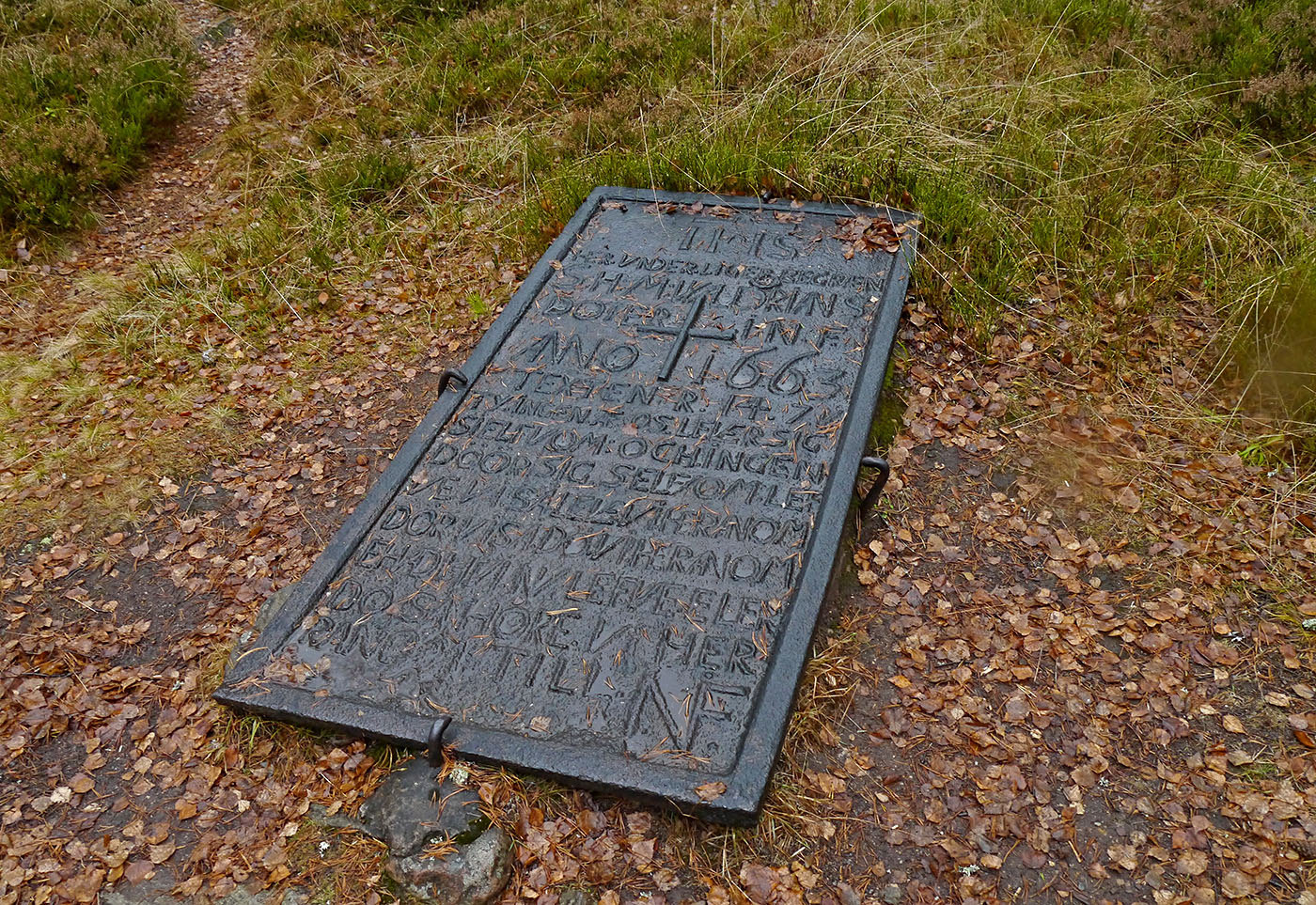 Only one of the old metal plates that used to cover the graves remain. Most of them have been used for baking ovens.