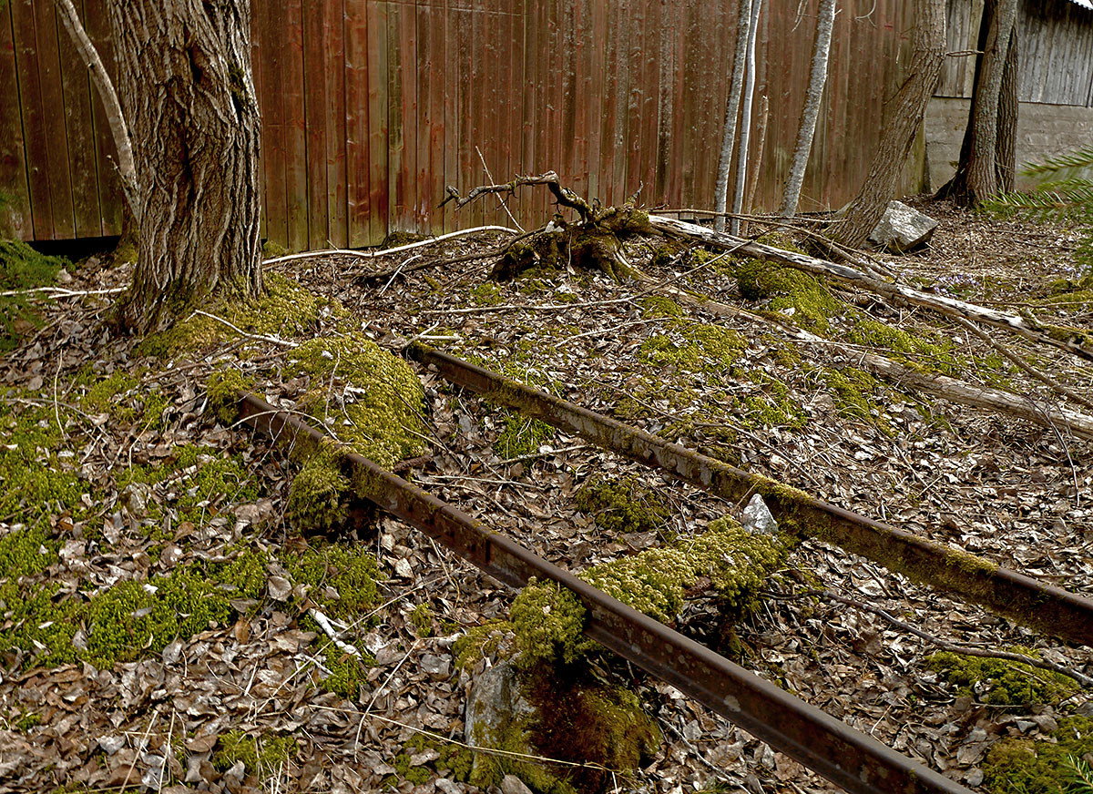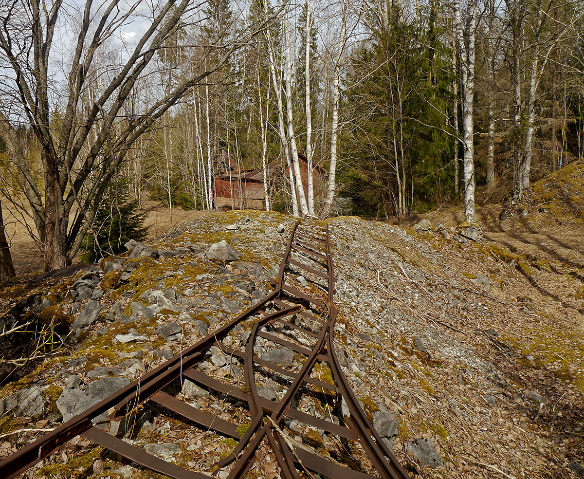 Från bruket leder järnvägsspår ner mot själva kalkbrottet.