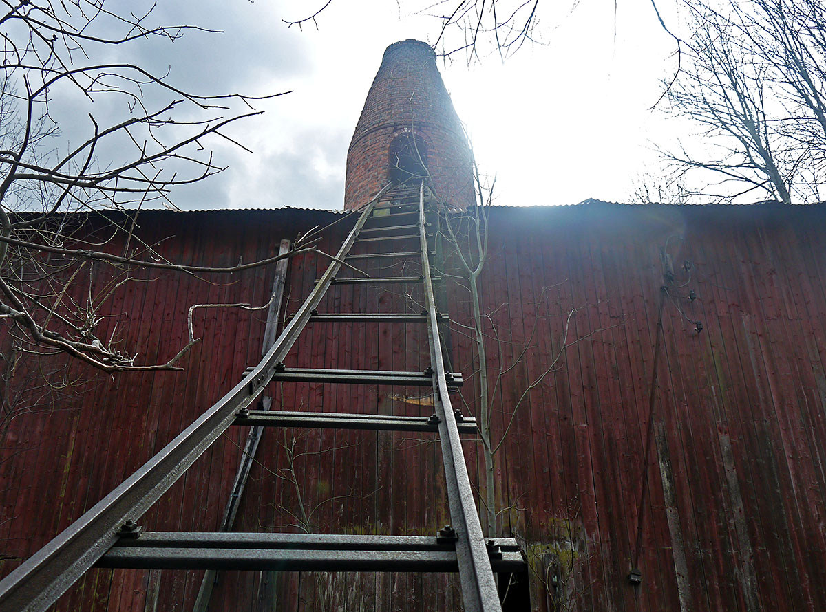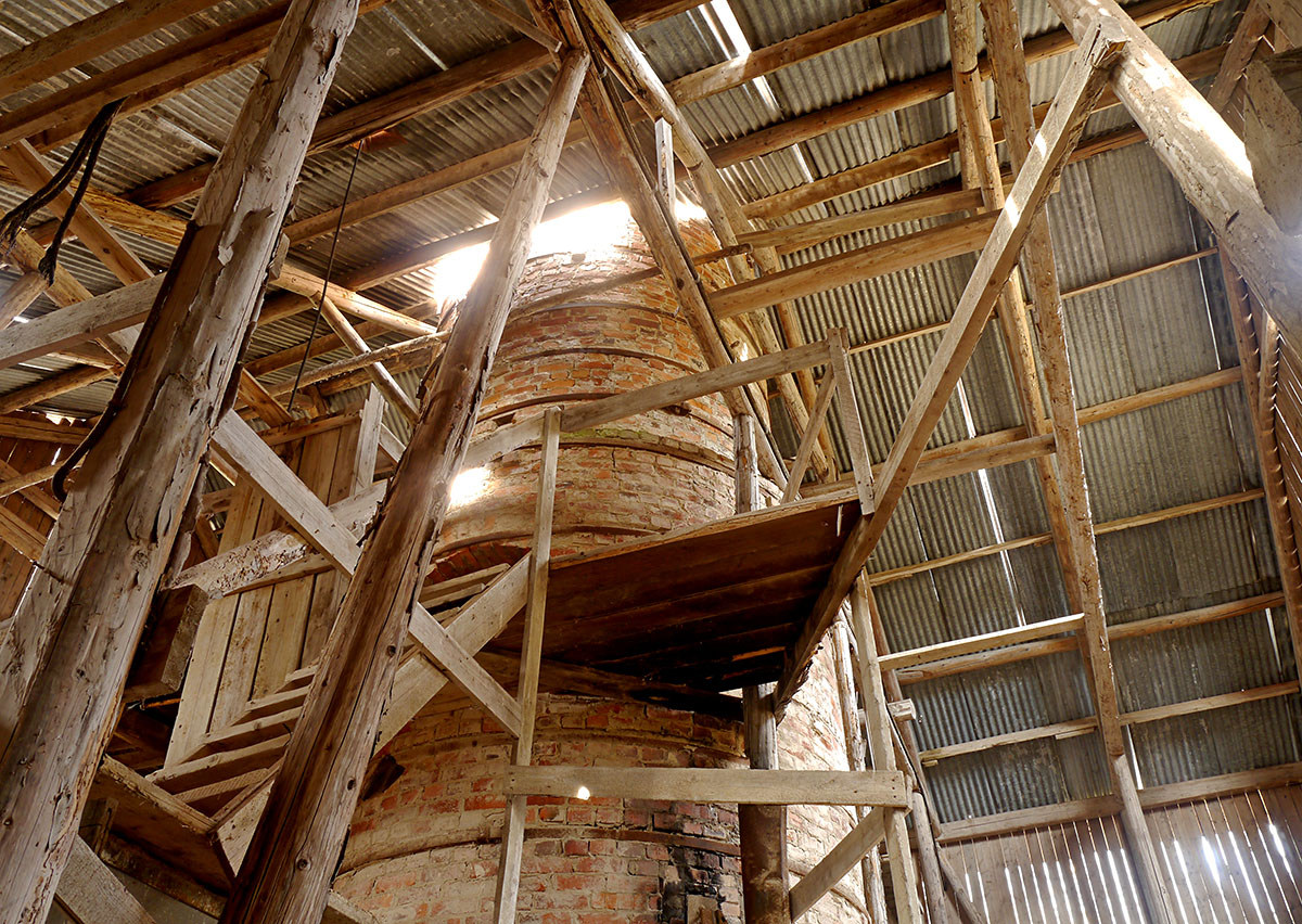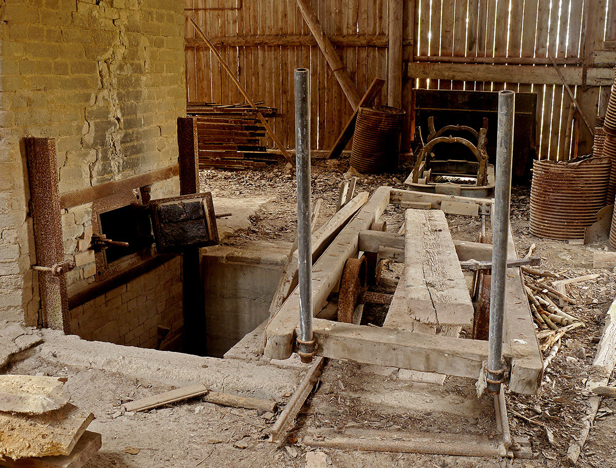 Kalken transporterades från brottet upp till toppen av ugnen där det släpptes ned för att brännas.