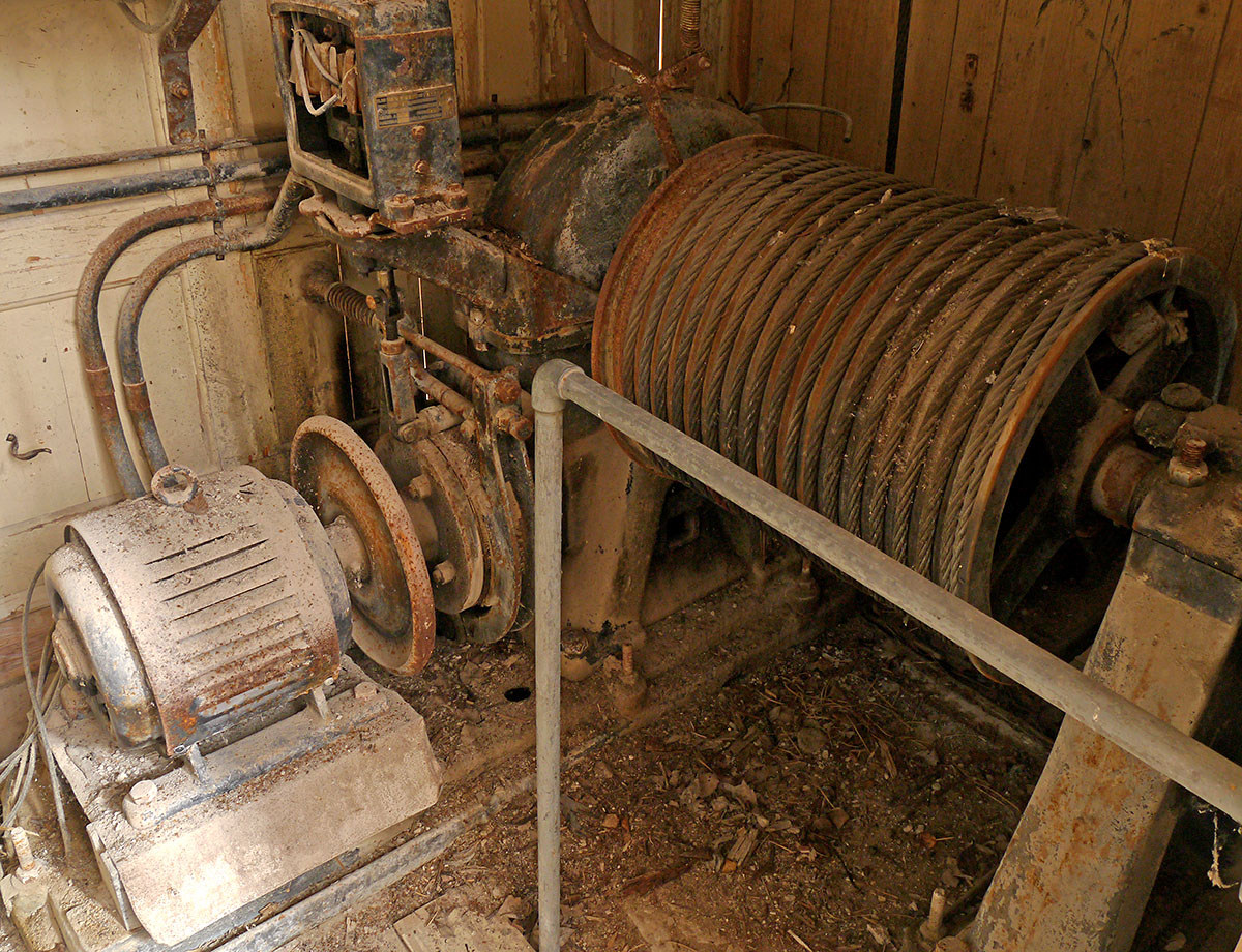 Kalkbrottet är numera vattenfyllt då pumparna sedan länge stannat och taket på pumpbyggnaden kollapsat under många vintrars snö.