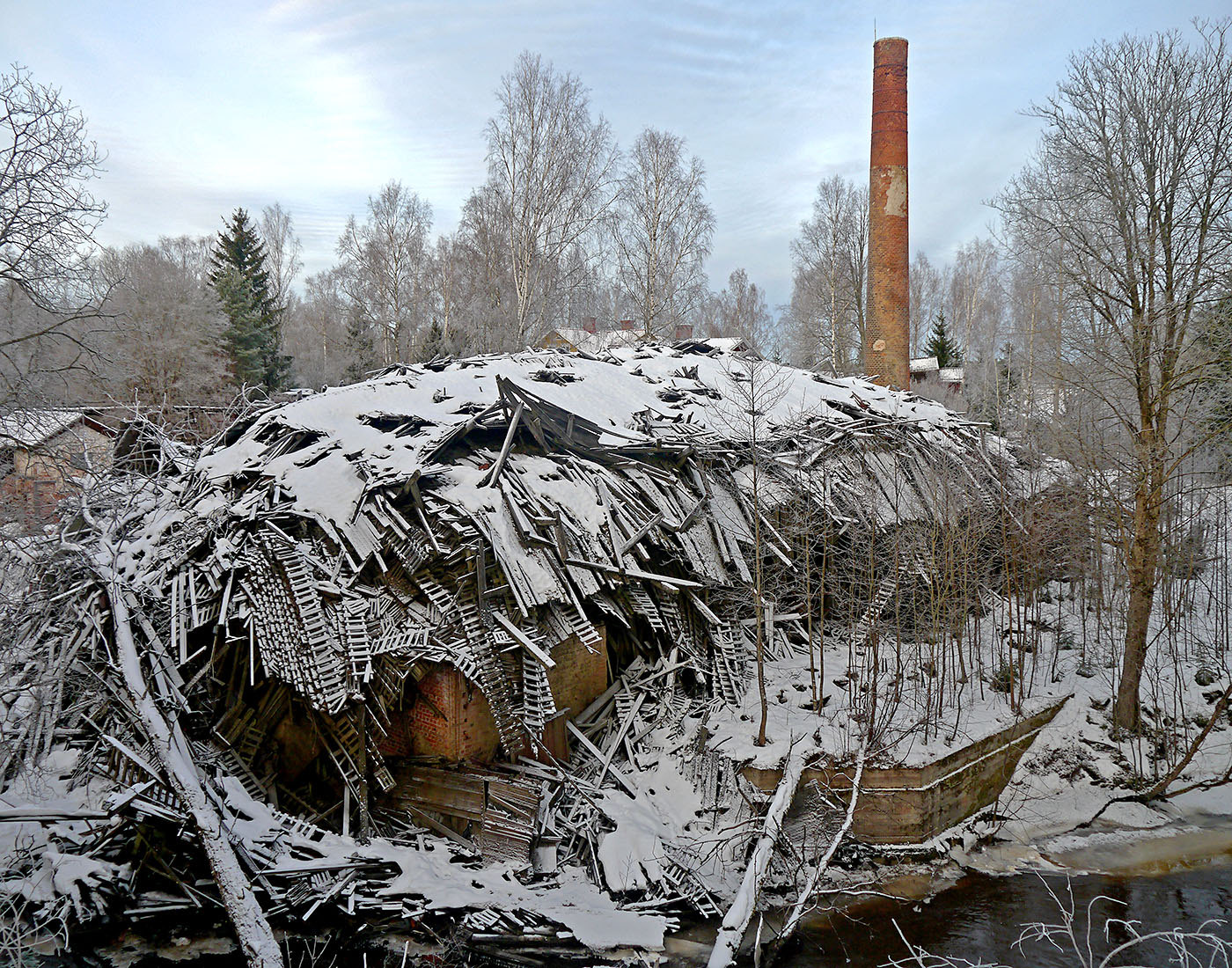 Få rester finns idag kvar. Tegelbruken byggdes oftast av trä och det var legio att de brann ner då och då. När branschen kollapsade revs de sista eller brändes ned. Tegelbruket på bilden nedan sägs en gång ha varit Nordens högsta industribyggnad i trä, totalt åtta våningar Byggnaden har helt enkelt fått kollapsa och är nu möjligen Nordens största brädhög.